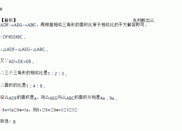 如图,△ABC中,DF∥EG∥BC,且AD=DE=EB,则△ABC被分成的三部分的面积比SⅠ∶SⅡ∶SⅢ为( )