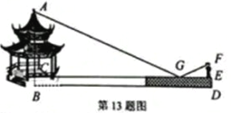 赵亮同学想利用影长测量学校旗杆的高度,如图,他在某一时刻立1米长的标杆测得其影长为1.2米,同时旗杆的投影一部分在地面上,另一部分在某一建筑的墙上,分别测得其长度为9.6米和2米,则学校旗杆的高度为________米.