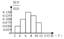 某校120名学生某一周用于阅读课外书籍的时间的频率分布直方图如图所示.其中阅读时间是8~10小时的频数和频率分别是( )