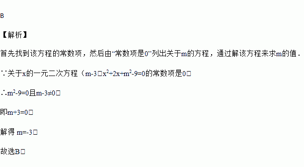 若一元二次方程(m-3)x2+2x+m2-9=0的常数项为0,则m的值为 ( )