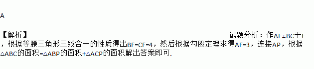 如图,在△ABC中,AB=AC=5,BC=8,P是BC边上的动点,过点P作PD⊥AB于点D,PE⊥AC于点E,则PD+PE的长是( )
