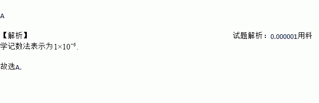 石墨烯是从石墨材料中剥离出来,由碳原子组成的只有一层原子厚度的二维晶体.石墨烯(Graphene)是人类已知强度最高的物质,据科学家们测算,要施加55牛顿的压力才能使0.000001米长的石墨烯断裂.其中0.000001用科学记数法表示为( )