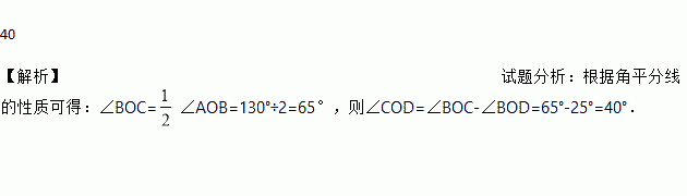 如图,OC是∠AOB的平分线,如果∠AOB=130°,∠BOD=25°,那么∠COD=________________°.