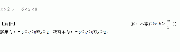 如图,在平面直角坐标系中,函数y=kx+b(k≠0)与 (m≠0)的图象相交于点A(2,3),B(?6,?1)。则关于x的不等式kx+b>的解集是____________。