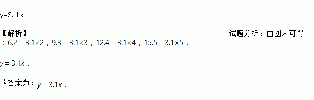 售价y/元 | 3.1 | 6.2 | 9.3 | 12.4 | 15.5 |