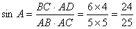 在△ABC中,AB=AC=5,BC=6,求cosB、sinA。