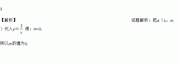 若点A(1,m)在反比例函数y=的图像上,则m的值为_______________.