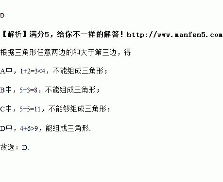 A. 1,2,4 B. 3,5,8 C. 5,5,11 D. 4,9,6