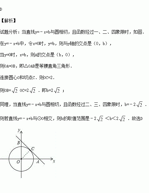 以坐标原点为圆心,作半径为2的圆,若直线与相交,则的取值范围是( )