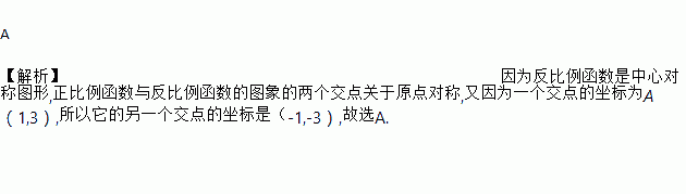 已知反比例函数和正比例函数在第一象限的交点为A(1,3),则在第三象限的交点B为( )