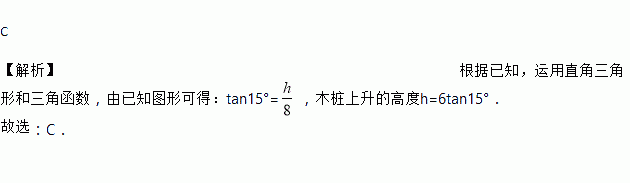 如图,将一个Rt△ABC形状的楔子从木桩的底端点P沿水平方向打入木桩底下,使木桩向上运动.已知楔子斜面的倾斜角为15°,若楔子沿水平方向前进6cm(如箭头所示),则木桩上升了( )