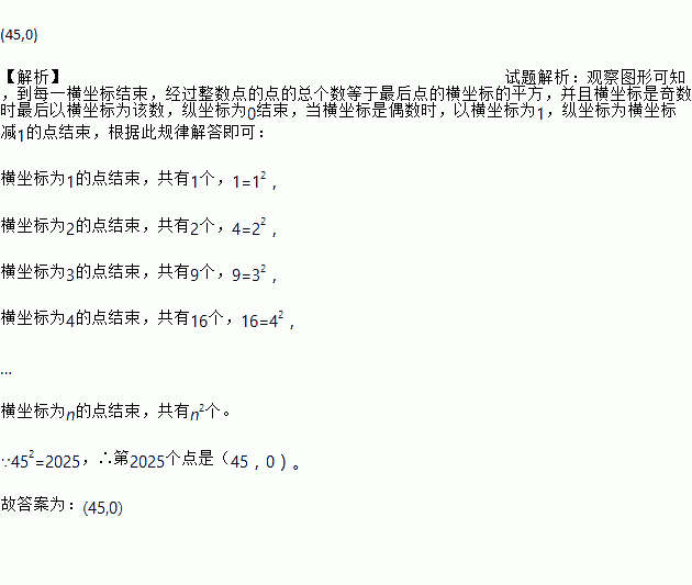 如图,在平面直角坐标系中,有若干个横坐标分别为整数的点,其顺序按图中“→”方向排列,如(1,0),(2,0),(2,1),(1,1),(1,2),(2,2),….根据这个规律,第2 025个点的坐标为________.
