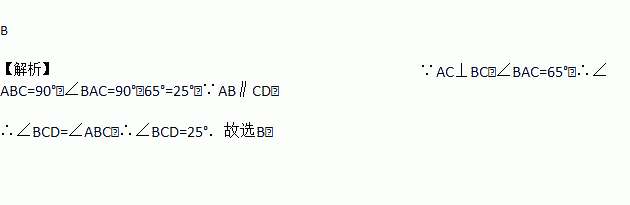 如图,AB∥CD,AC⊥BC,∠BAC=65°,则∠BCD的度数等于( )