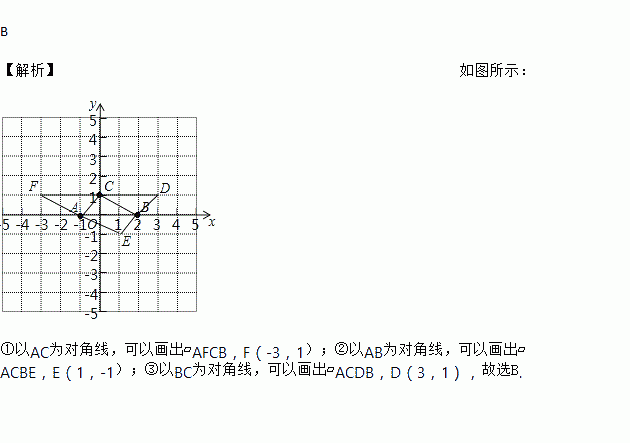 如图,在平面直角坐标系中,以A(-1,0),B(2,0),C(0,1)为顶点构造平行四边形,下列各点中不能作为平行四边形顶点坐标的是( )