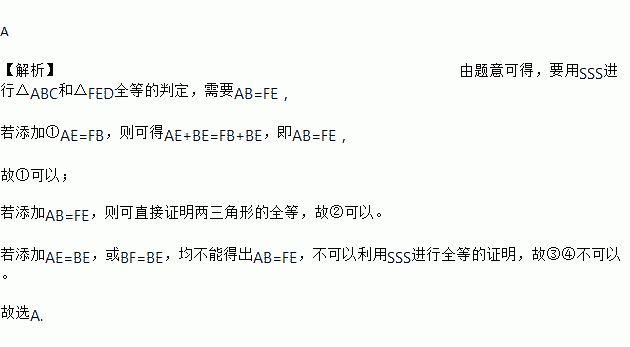 ①AE=FB;②AB=FE;③AE=BE;④BF=BE,可利用的是( )