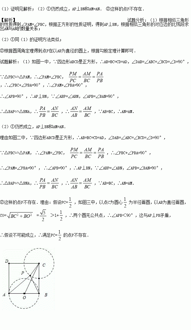 (2)①如图二,在点P运动过程中,满足△PBC∽△PAM的点M在AB的延长线上时,AP⊥BN和AM=AN是否成立?
