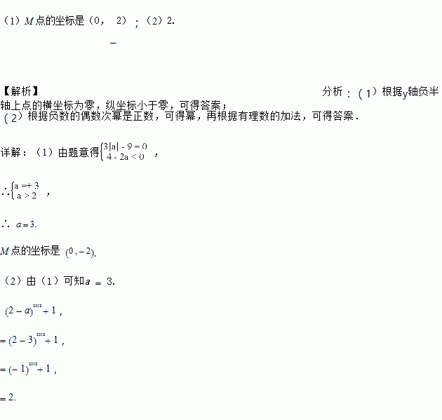 已知点 M ? , 4 ? 2a?在 y 轴负半轴上.(1)求点 M 的坐标(2)求 ?2 ? a????? 1 的值.
