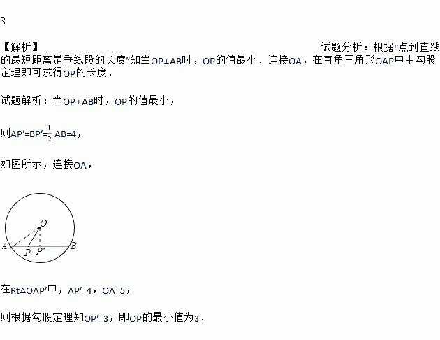 如图,⊙O的直径为10,弦AB长为8,点P在AB上运动,则OP的最小值是______.