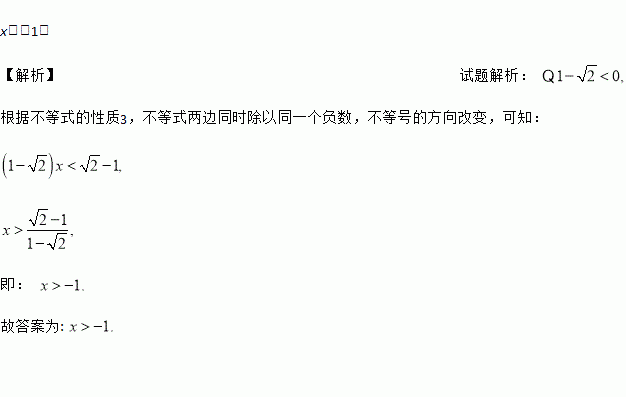 关于x的不等式 (1-)x<(-1)的解集是 .