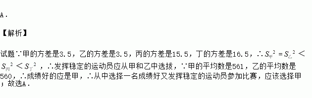 根据表中数据,要从中选择一名成绩好又发挥稳定的运动员参加比赛,应该选择( )