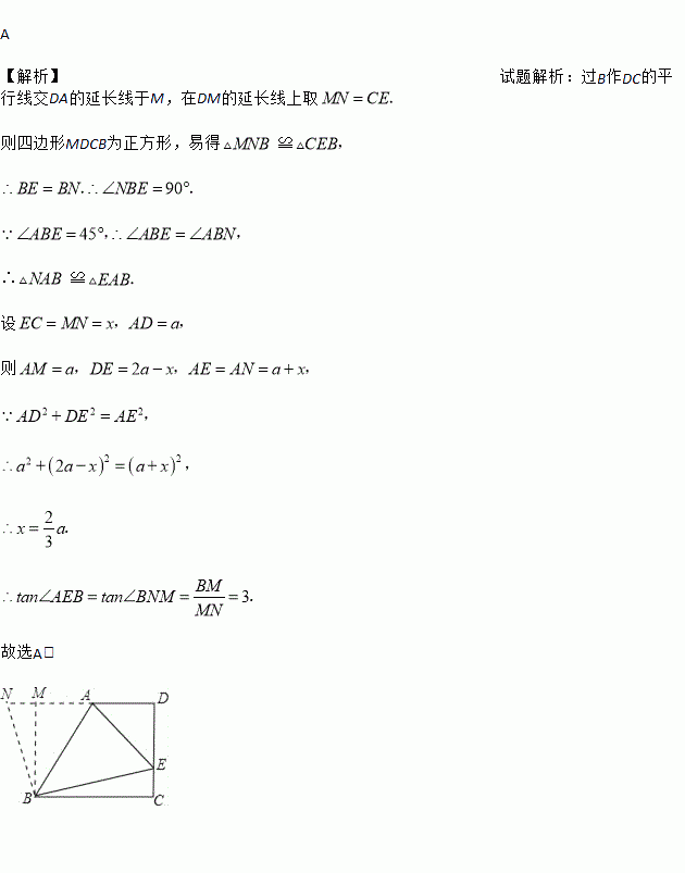如图在梯形ABCD中,AD∥BC,AD⊥CD,BC=CD=2AD,E是CD上一点,∠ABE=45°,则tan∠AEB的值等于( )