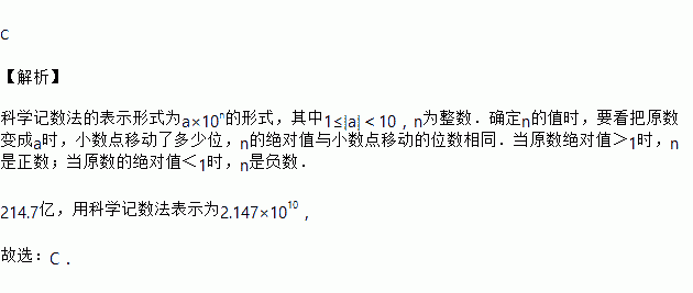 今年一季度,河南省对“一带一路”沿线国家进出口总额达214.7亿元,数据“214.7亿”用科学记数法表示为(  )