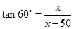 如图,某校数学兴趣小组的同学在测量建筑物AB的高度时,在地面的C处测得点A的仰角为45°,向前走50米到达D处,在D处测得点A的仰角为60°,求建筑物AB的高度.![]()