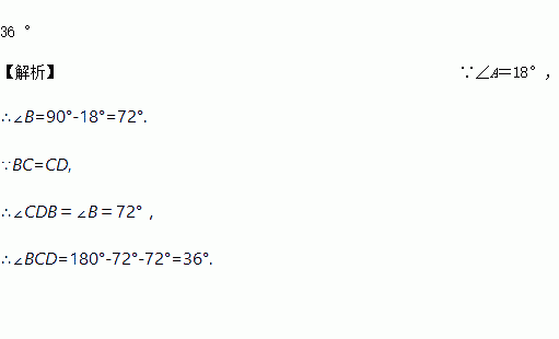 如图,在Rt△ABC中,∠ACB=90°,∠A=18°,将△ABC绕点C按顺时针方向旋转后得到△EDC,