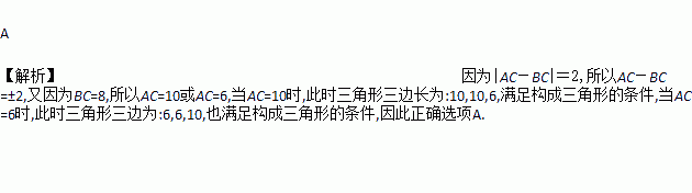 已知等腰三角形ABC的底边BC的长为8,且|AC-BC|=2,则腰AC的长为( )