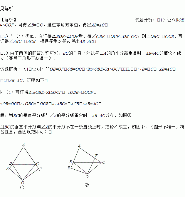 (3)当点O在△ABC外部时,且OB=OC,试判断AB与AC的关系.(画出图形,写出结果即可,无须说明理由)