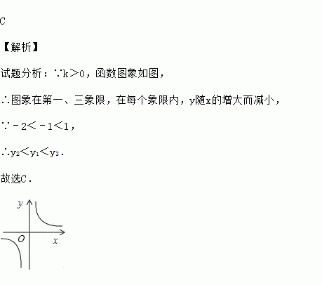 A.y1<y2<y3 B.y3<y1<y2 C.y2<y1<y3 D.y3<y2<y1