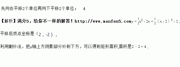 如图,在平面直角坐标系中,抛物线可通过平移变换向__________得到抛物线,其对称轴与两段抛物线所围成的阴影部分(如图所示)的面积是__________.