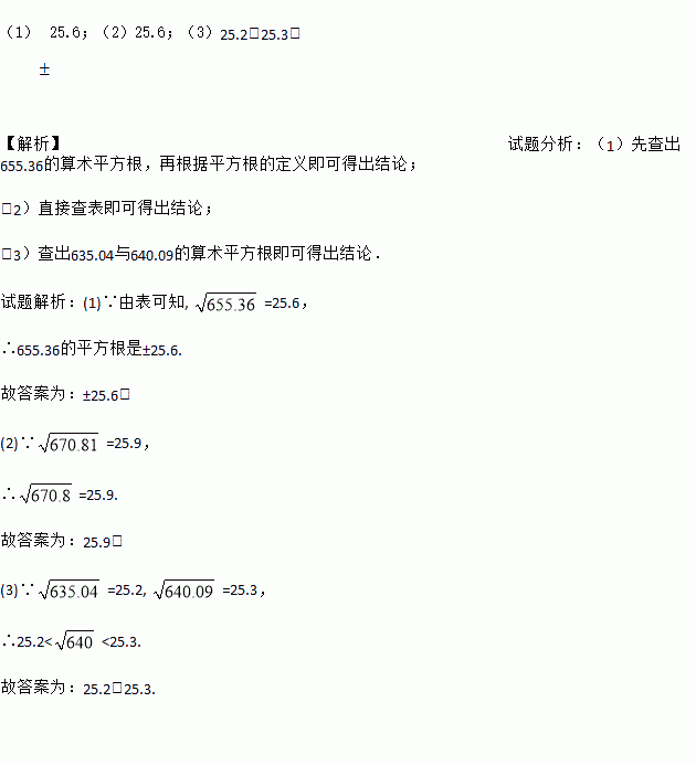 (1)655.36的平方根是 .