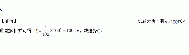 C 【解析】试题分析:将V=100代入函数解析式可得:S=m,故选择C.