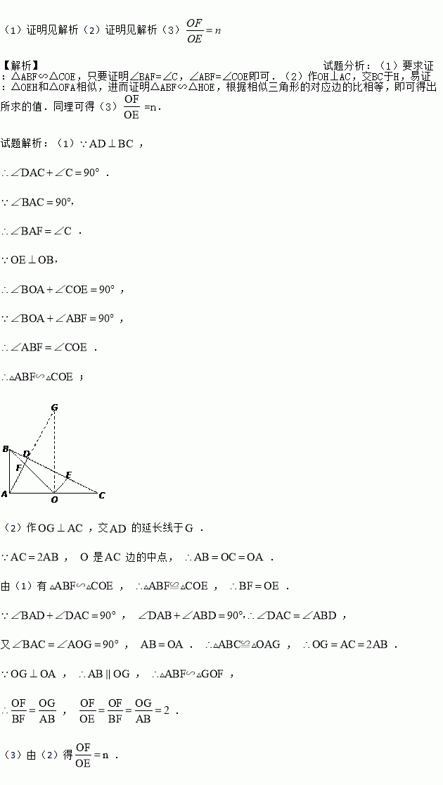 如图1,在Rt△ABC中,∠BAC=90º.AD⊥BC于点D,点O是AC边上一点,连接BO交AD于F,OE⊥OB交BC边于点E.
