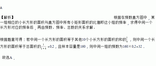 ,且共有160个数据,则中间一组数据的频数是( )