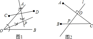 (1)尺规作图(不写作法,保留作图痕迹):如图1,已知∠AOB和C、D两点,求作一点P,使PC=PD,且P到∠AOB两边的距离相等;