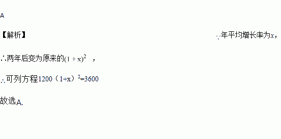某地2015年投入教育经费1200万元,预计2017年投入教育经费3600万元,若每年投入教育经费的年平均增长率为x,则根据题意下列方程正确的是( )