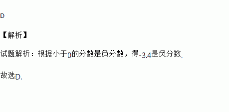 在,﹣2,0,﹣3.4这四个数中,属于负分数的是( )