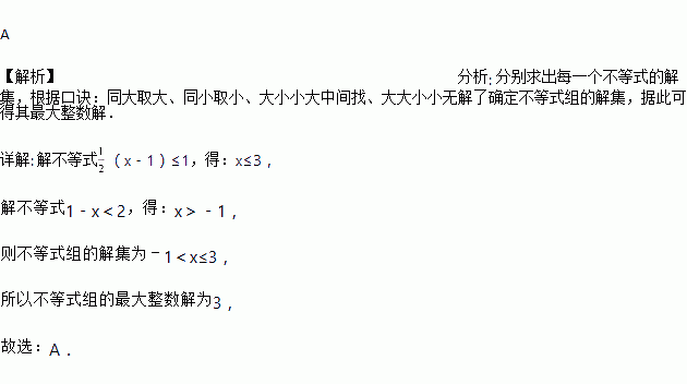 解不等式组 ,该不等式组的最大整数解是( )