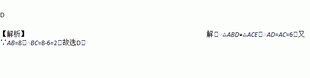 如图所示,△ABD≌△AEC,且AB=8,BD=7,AD=6,则BC为( )