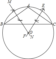 分析:首先画出MN和EF的垂直平分线,两线交于一点O,以O为圆心,OB长为半径画圆即可.