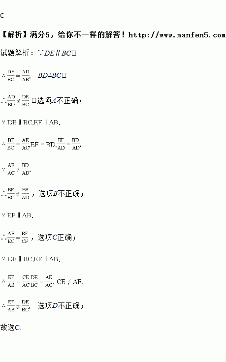 如图,点D、E、F分别是△ABC的边AB、AC、BC上的点,若DE∥BC,EF∥AB,则下列比例式一定成立的是( )