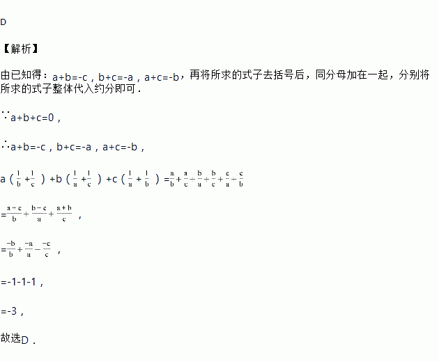 若a+b+c=0,且abc≠0,则a(+)+b(+)+c(+ )的值为( )