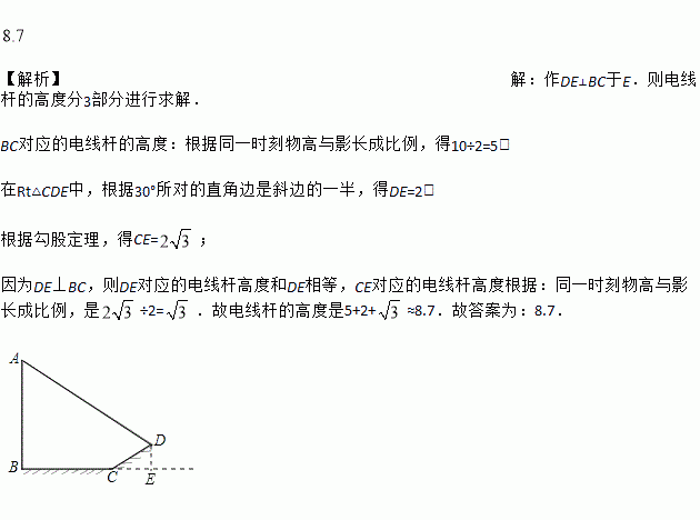 的高度,发现电线杆的影子恰好落在上坡的坡面