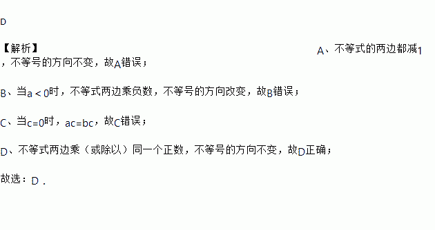 A. 若a>b,则a﹣1<b﹣1 B. 若a>b,则a2>b2