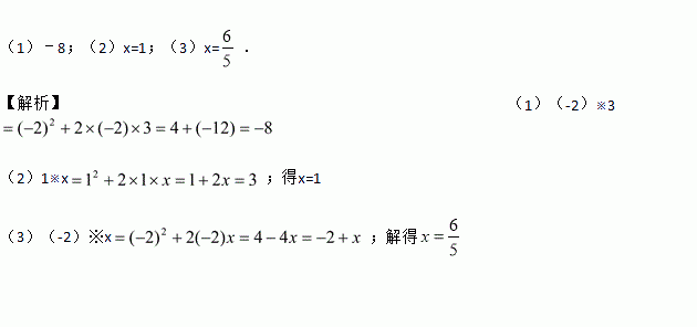(1)﹣8;(2)x=1;(3)x=. 【解析】(1)(-2)※3 (2)1※x;得x=1 (3)(-2)※x;解得