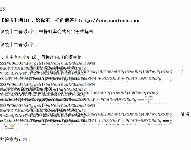 在一个不透明的袋子中装有若干个除颜色外形状大小完全相同的白球和红球,如果其中有个红球,且摸出白球的概率是![]()
