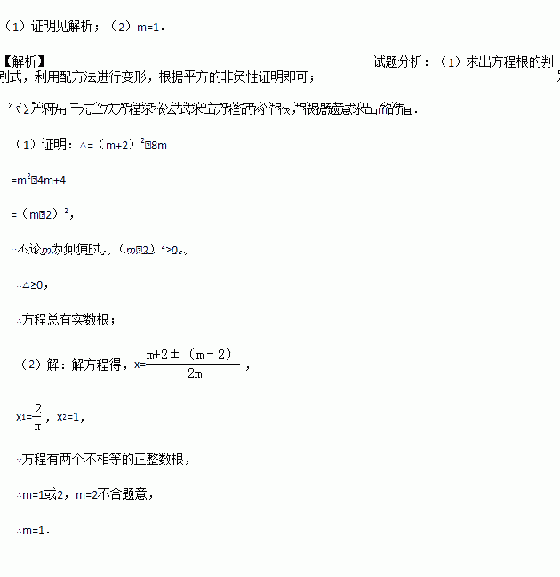(2)m为何整数时,方程有两个不相等的正整数根.