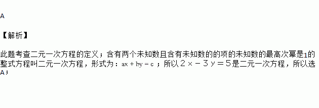 方程2x-3y=5,xy=3,x+=3,3x-y+2z=0,x2+y=6中是二元一次方程的有( )个.